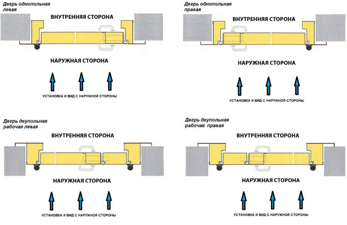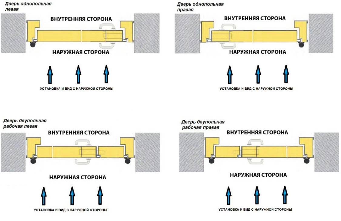 Также важно понимать, какой способ монтажа приемлем для вашего варианта. Ведь это влияет на тип конструкции каркаса будущей двери и комплект необходимого крепежа.